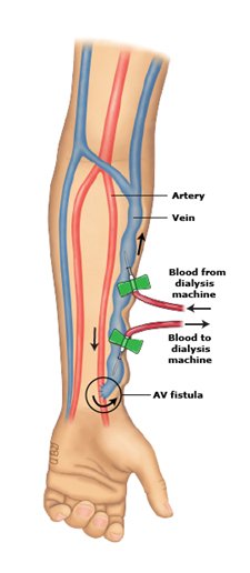 Access can be from Upper limbs (AVF – Arterio-venous Fistula), Permcaths (long-term Tunnelled dialysis catheters), AV- Grafts.